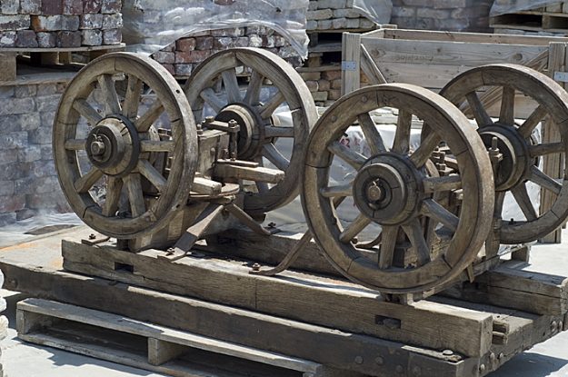 המסעות אחר הלבנים העתיקות מולידות לא פעם פריטים שונים ומיוחדים. עגלת העץ העתיקה היא דוגמה נהדרת למבחר הססגוני שמוצא דרכו אל חצר אולם התצוגה שלנו.