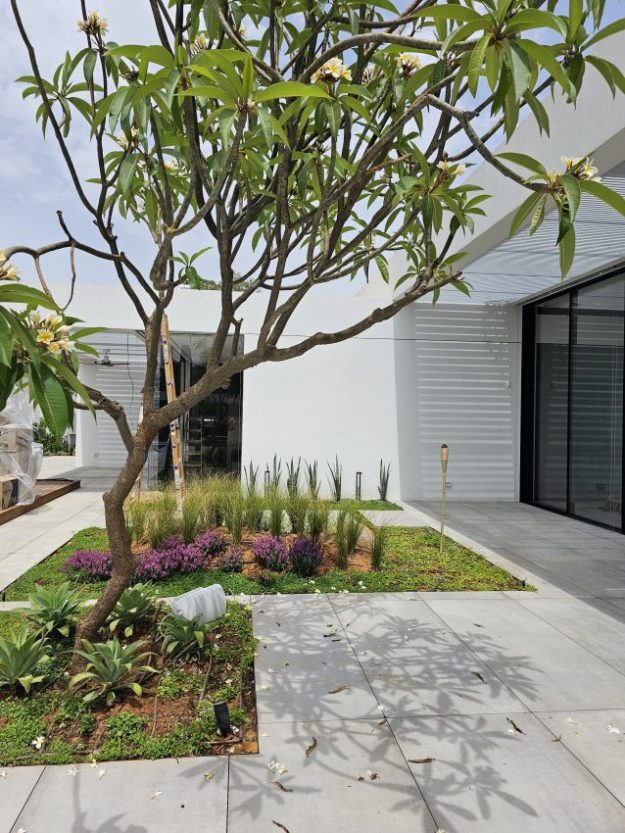 ריצוף חוץ באריחי בטון אדריכלי בעובי 2 ס”מ.